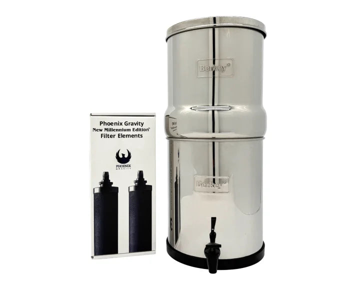 2 elements of a Berkey® system can purify approximately 22,710 liters of water before having to be replaced.